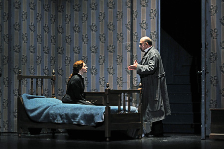そこに悪魔的な医者ミラクル博士がやってきて、アントニアの診察をおこない「薬と歌」を強く勧めます。一度はクレスペルに追い出されたミラクル博士は、またもや彼女のもとに現れ、歌うように唆すのでした。その誘惑に打ち勝とうと、亡き母に救いを求めますが、母の亡霊にあおられて激しく歌い出し、倒れてしまいます。